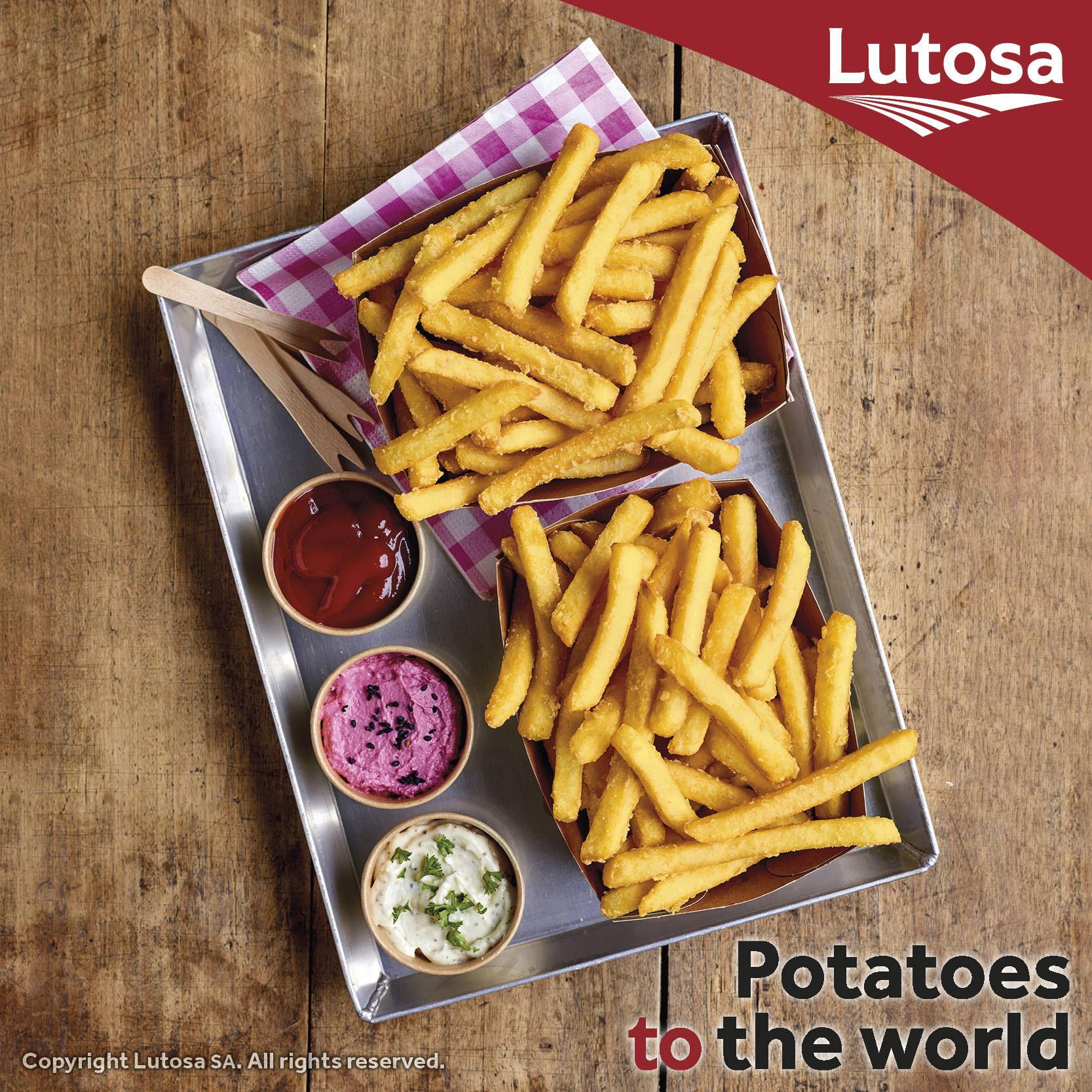 צ’יפס מצופה 10×10 מ״מ של Lutosa, בעל ציפוי ייעודי אולטרה קראנץ' לשמירה על פריכות לאחר ההכנה. הציפוי מאפשר שמירה על מרקם יציב גם לאחר זמן המתנה בין הכנה להגשה.