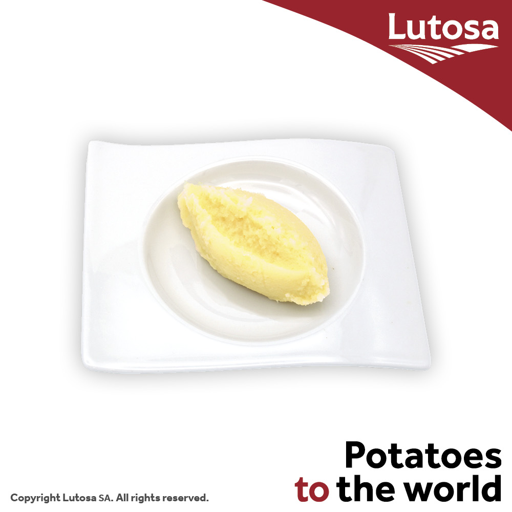 פירה תפוחי אדמה של Lutosa, המבוסס על תפוחי אדמה איכותיים בשילוב חלב וחמאה, לקבלת מרקם חלק ועקבי.